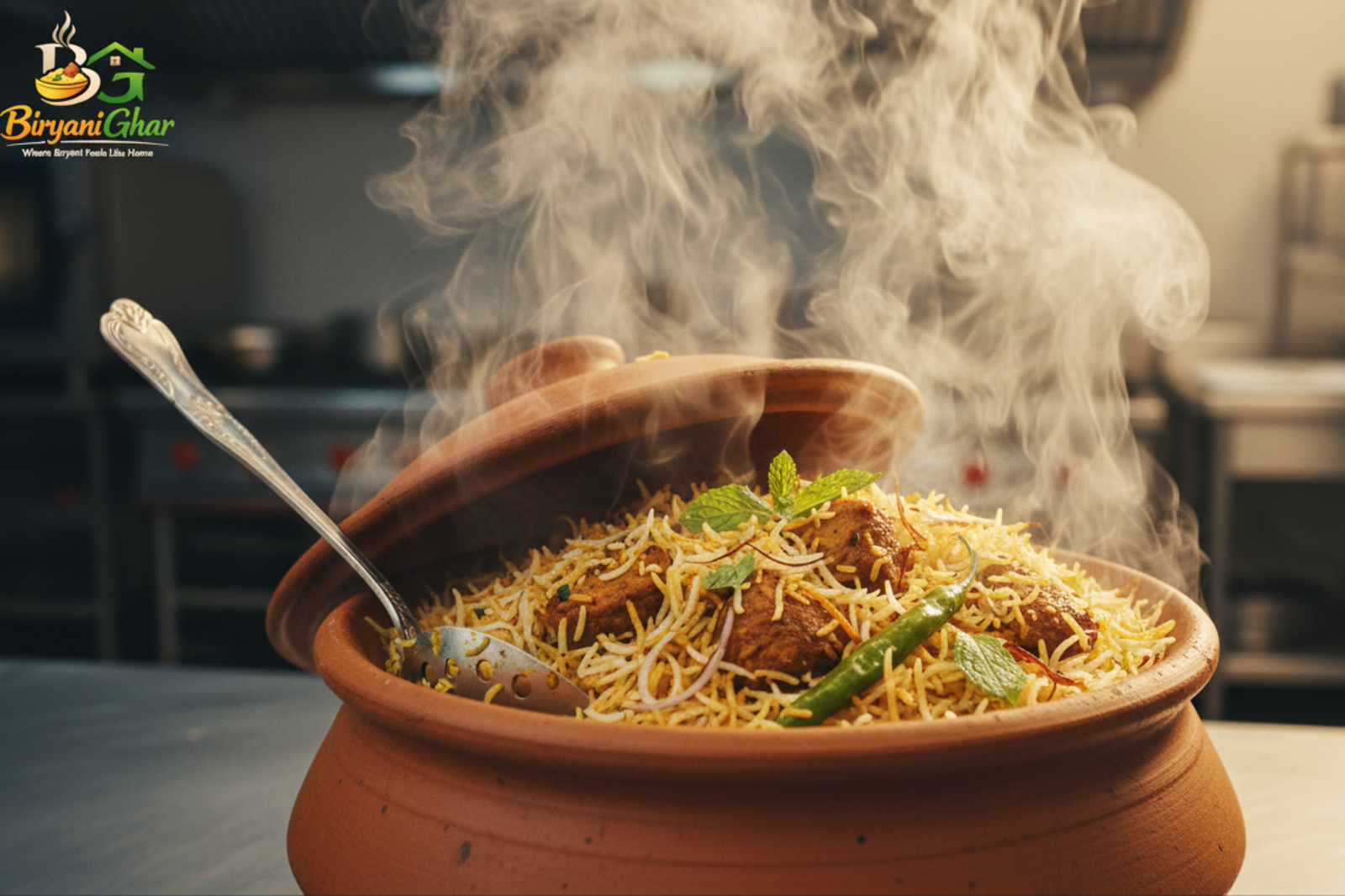 Authentic Dum Biryani, slow-cooked with royal spices and timeless recipes.